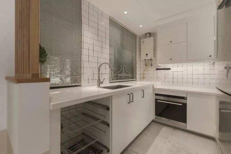 经常做饭的家庭,餐厨垃圾是非常多的,几乎每天都会满满的一桶,所以垃圾桶是必备的,而垃圾桶在厨房动线活动空间有限的情况下,就会显得碍事了,而在橱柜下留空一个位置,正好就可以成为垃圾桶的安身之所了!