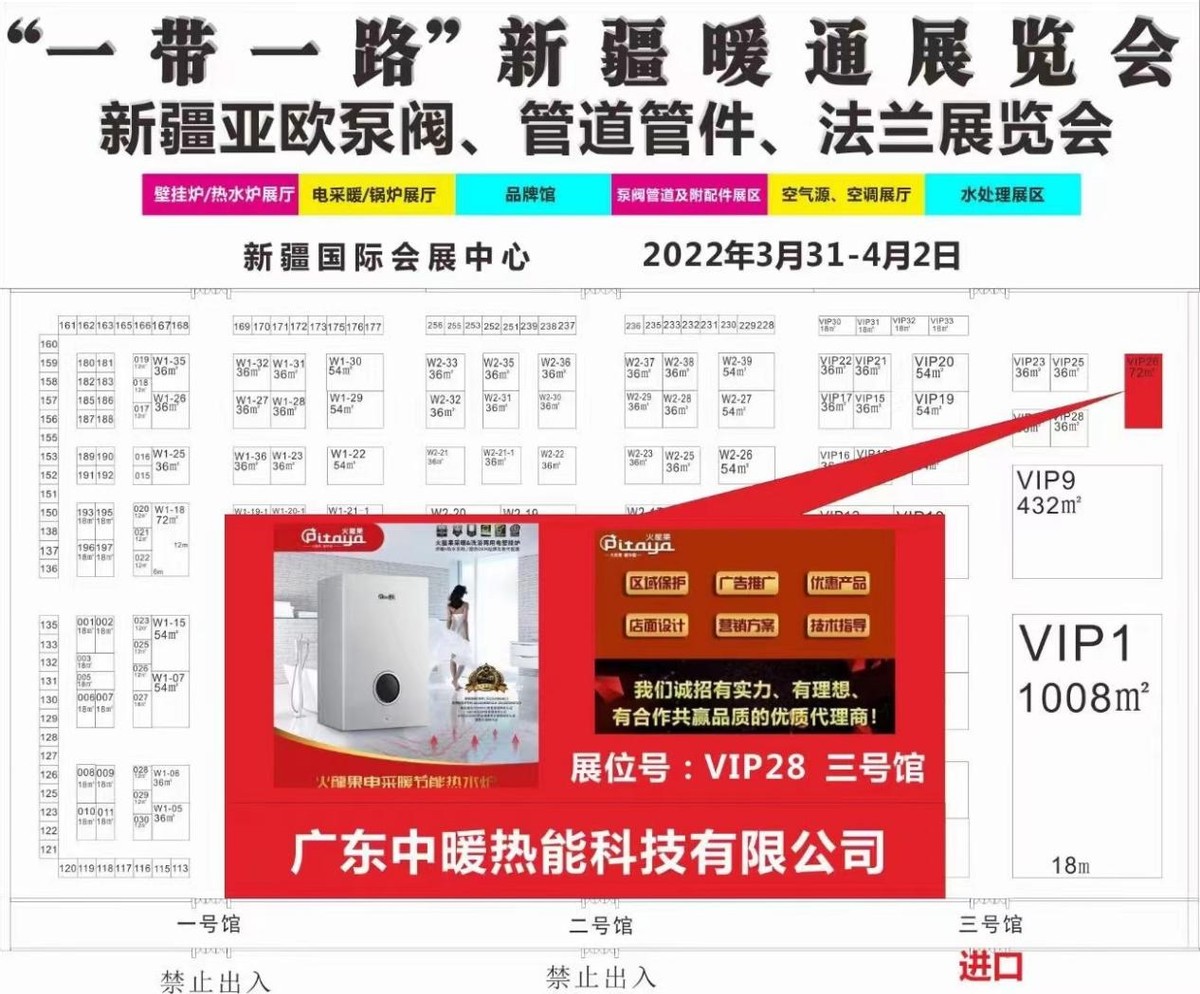 2022年3月31-4月2日,中暖热能科技将出席“一带一路”新疆暖通展览会,新疆国际会展中心 展位号:VIP28 三号馆,欢迎您的到来!