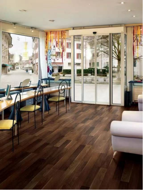 卢森地板还具有抗渍性和抗香烟灼烧等特点。这样对于餐厅、咖啡厅、酒吧等空间来说,卢森地板也是完全可以胜任的。而且它的抗光照性也很好,即使像上图中临街店铺有多扇、大面积的窗户,有长时间的阳光照射,也不会影响卢森地板的品质。由于卢森地板的稳定性能优质,所以它能应对一年四季的日照及温湿度变化。