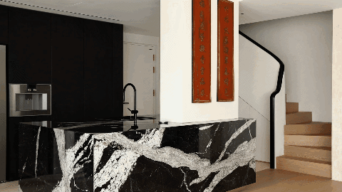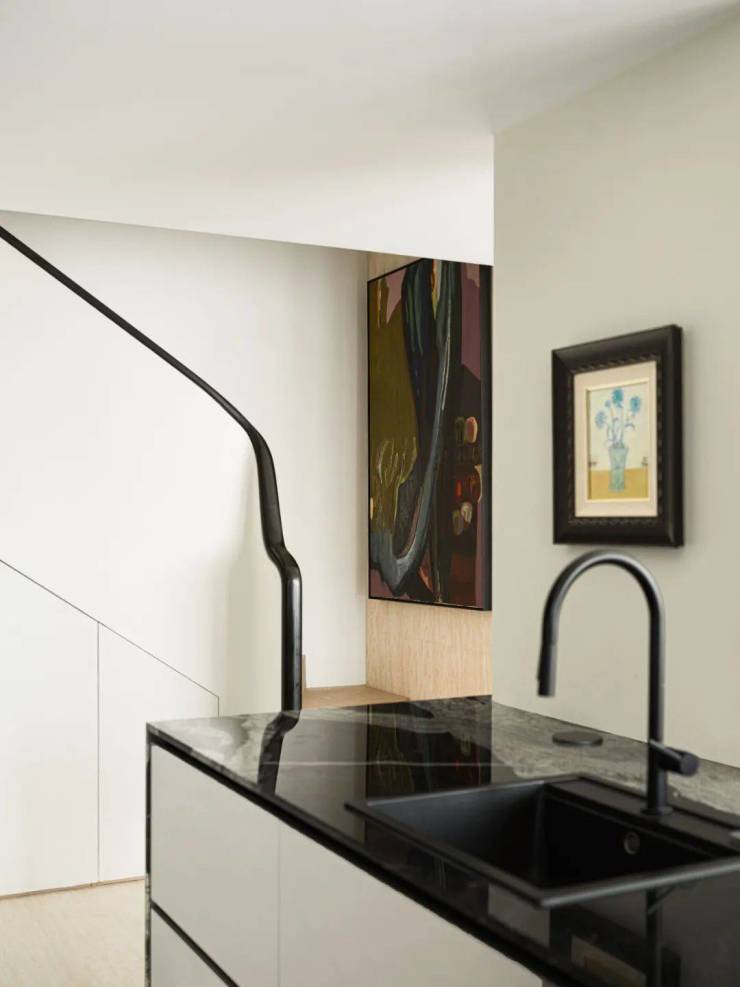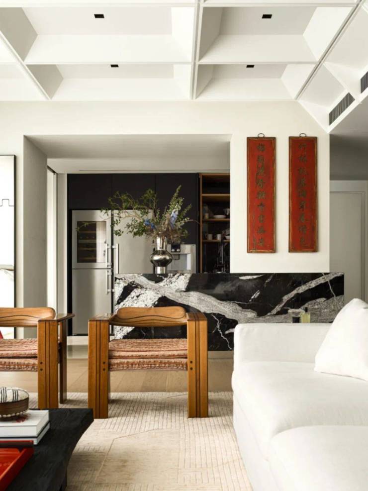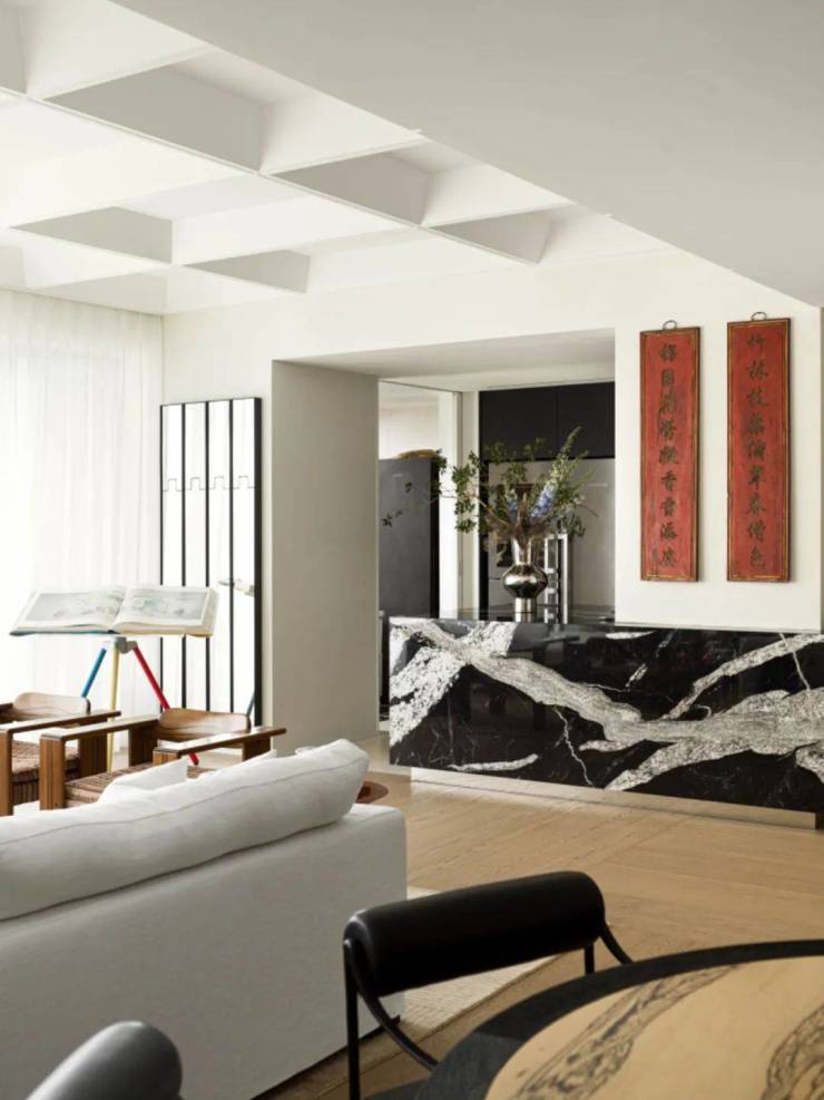 在设计过程中,我们反复构思如何让使用者的目光聚焦在一些有美感的角落,如餐厅的屏风和岛台都是这样的视觉重点,能在生活中自然而然吸引目光。每一次视线停驻,视角转换,都会为生活带来无限乐趣。