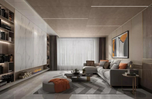 对于客厅这样较大的空间而言,与小尺寸的扣板安装相比,全铝大板在家装效率上更胜一筹,大板安装,提高效率。