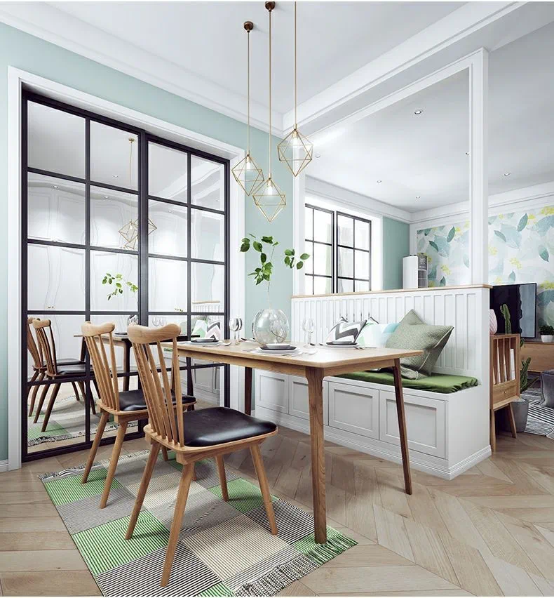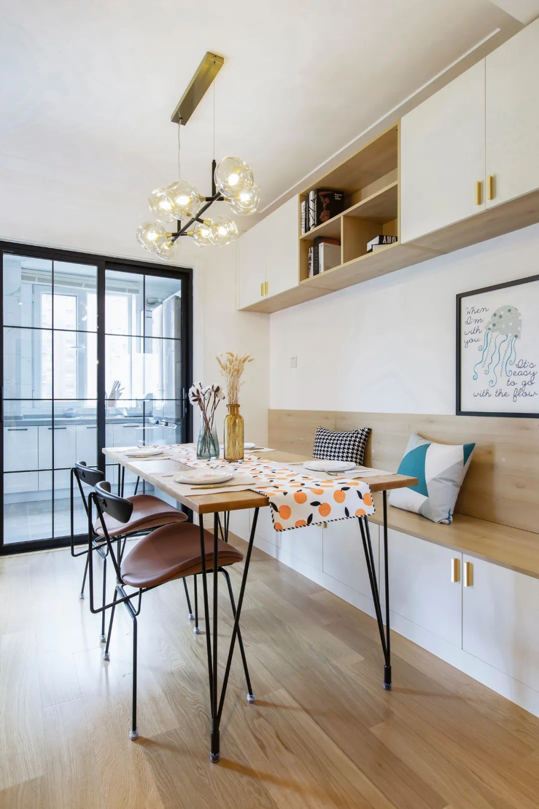 卡座有颜值高,提升家的情调,省地方,能够充分利用角落空间,很整洁,增加收纳空间,包裹感,给人更多的安全感......等等优点,可以运用到玄关、客厅、餐厅、阳台等室内空间。