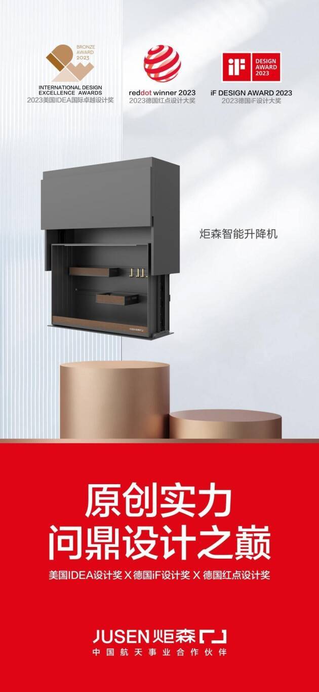 炬森精密今年推出的革命性黑科技产品一一“智能升降机”,凭借超前、极简的产品设计理念,在行业内一骑绝尘,斩获了今年的“德国IF设计奖”、“德国红点设计奖”与“美国IDEA国际卓越设计奖”这三大全球最顶尖设计奖,引起行业轰动,这也是五金行业里第一家问鼎实现世界设计奖“大满贯”的企业!
