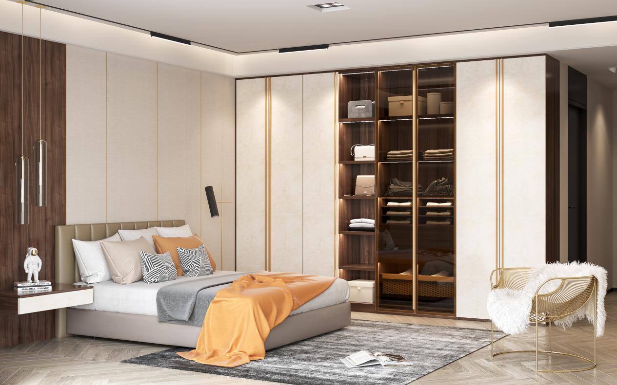 定制柜体时,遵循“上顶”原则,所有柜体直接到顶,以免留下落灰空间,柜顶较高也不容易清理打扫;选择家具时,尽量选择“悬空式”设计,像浴室柜、马桶等等都优先选择悬空的,不仅颜值更高、体积更小,还能避免卫生死角,美观和实用并存。