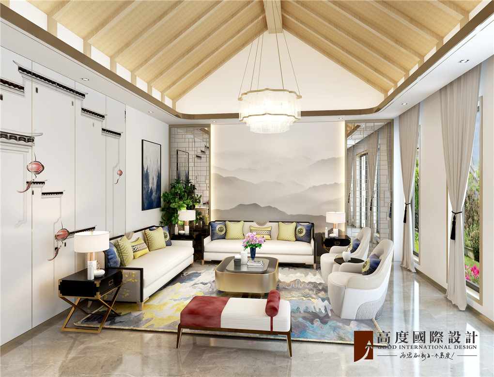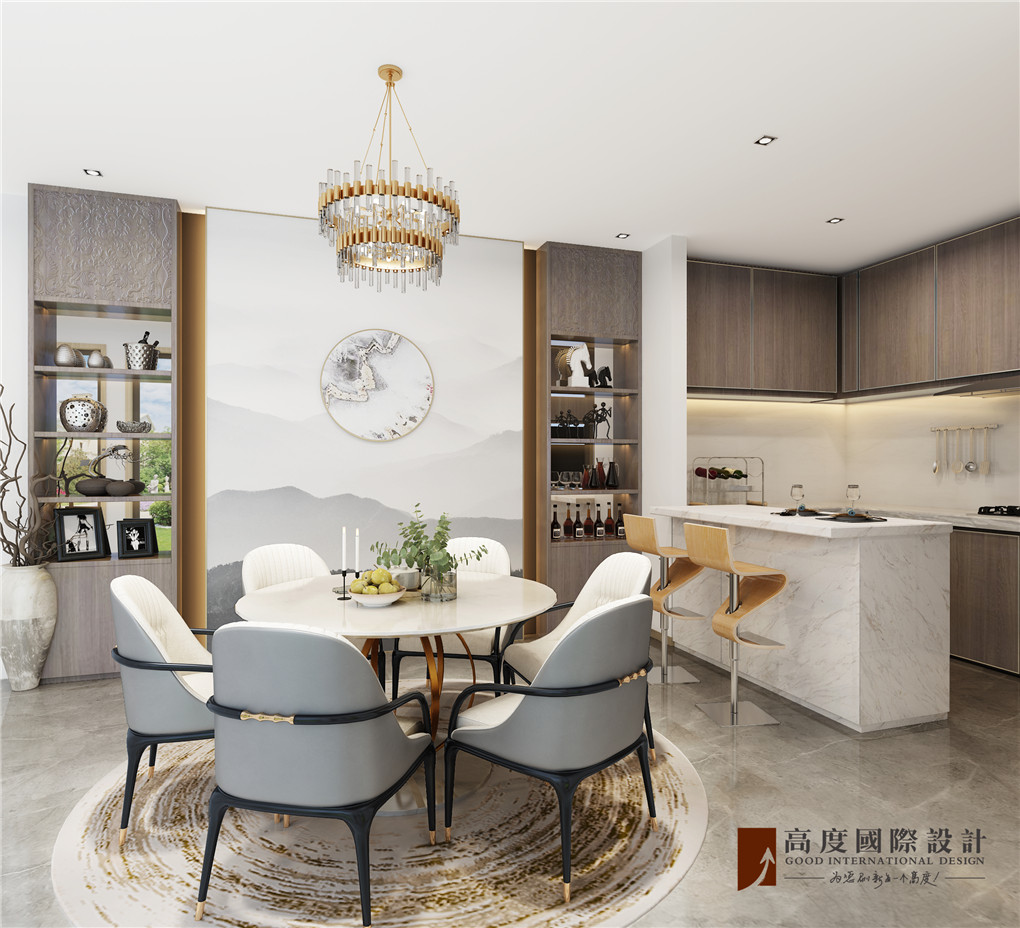 本套作品定位现代中式风格,以现代风格为基调,局部融入中式元素,让整个空间前卫中带有传统。