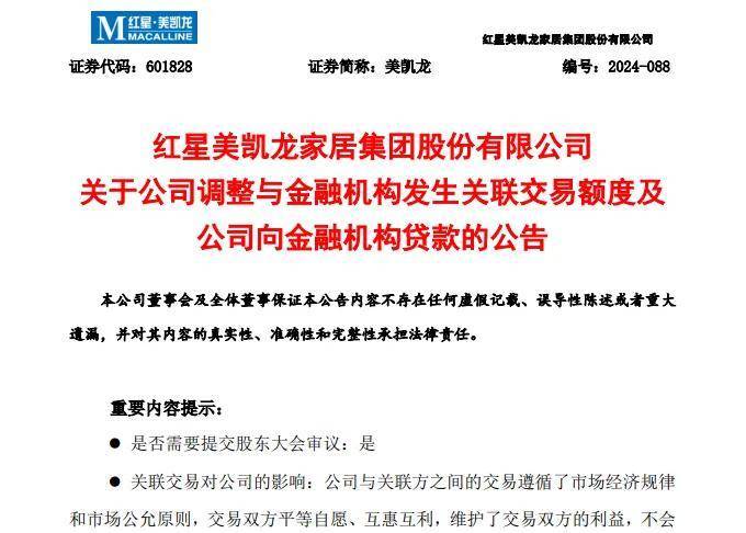 12月6日,美凯龙(601828.SH)公告称,为满足公司的流动资金周转需要,提高公司资金使用效率,公司及子公司拟与厦门国际银行股份有限公司(以下简称“厦门国际银行”)开展存款、贷款等综合业务。