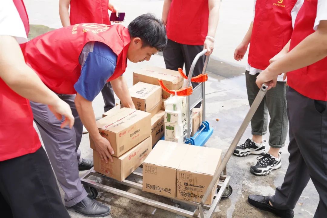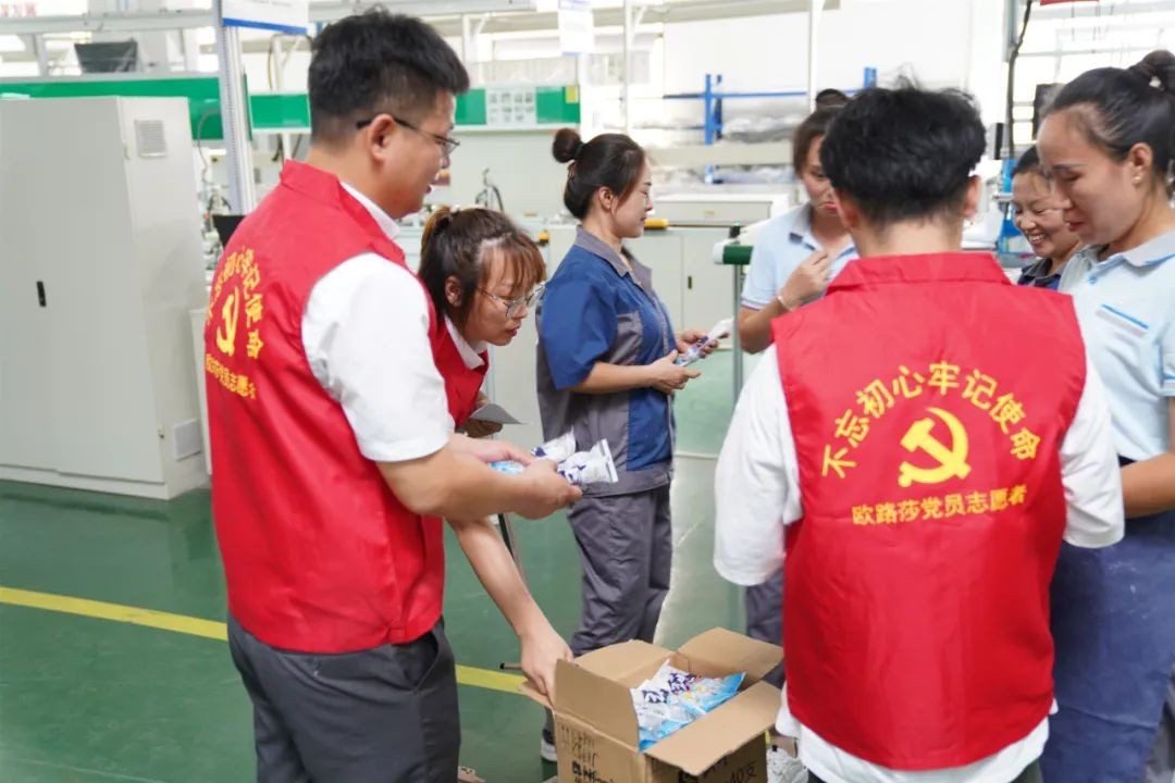 7月12日,欧路莎党支部工作人员来到车间,为一线员工送去绿豆汤、雪糕、防暑药品等清凉慰问品。